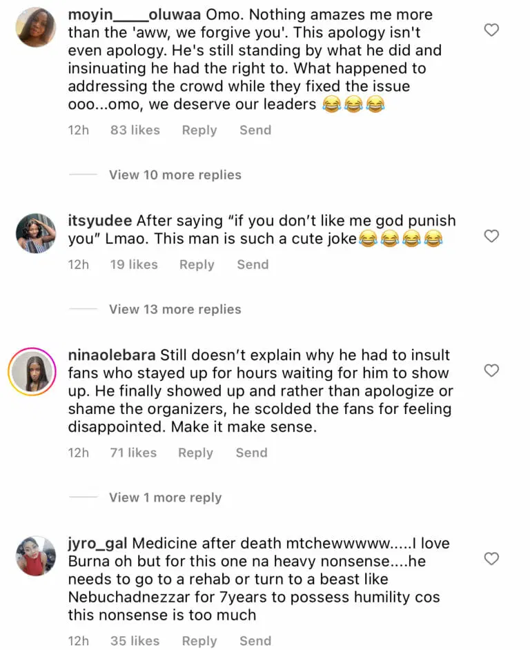 Grammy award-winning star, and one of Nigeria’s finest Damini Ogulu popularly know as Burna boy took to his Instagram story and apologise to his Nigerian fans.