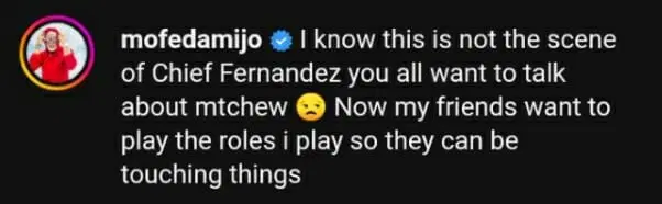 “I know this is not the scene of Chief Fernandez you all want to talk about… Now my friends want to play the roles i play so they can be touching things”