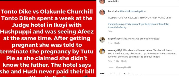 Kemi Olunloyo shared an investigation she allegedly conducted on the Churchill and Tonto Dikeh child custody saga on her Instagram page.