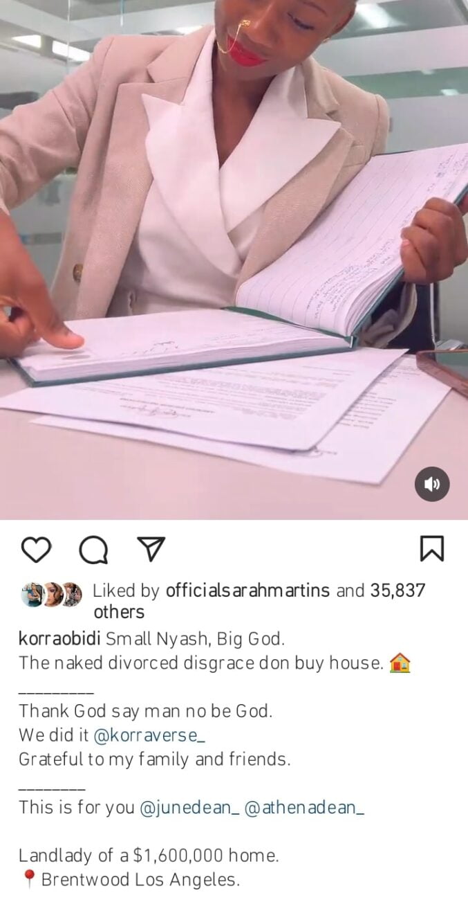 Korra Obidi, a Nigerian-American dancer, has spent millions of dollars on a new home in Los Angeles, USA.
