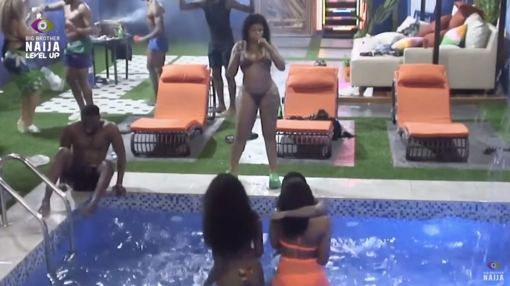 The female housemates performed twerking moves for Adekunle in the pool while wearing a bikini that exposed body parts.