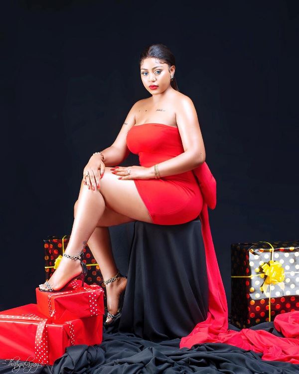 Nollywood actress, Regina Daniels was decked in gorgeous red outfit on Sunday to mark Christmas to the admiration of all.