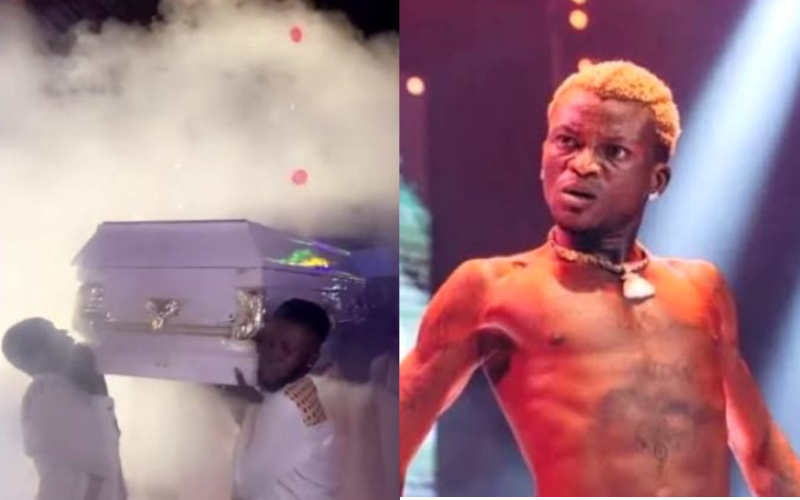 Controversial Habeeb Okikiola, a.k.a. Portable, a Nigerian singer, once again made headlines online by making a dramatic entrance to his concert at Fela’s Shrine in Lagos while carrying a coffin.