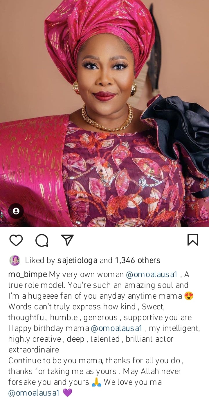 She wrote: “My very own woman @omoalausa1. A true role model. You’re such an amazing soul and I’m a hugeee fan of you anyday mama. Words can’t truly express how kind, sweet, thoughtful, humble, generous, supportive you are. Happy birthday mama @omoalausa1. My intelligent, highly creative, deep, talented, brilliant actor extraordinaire.