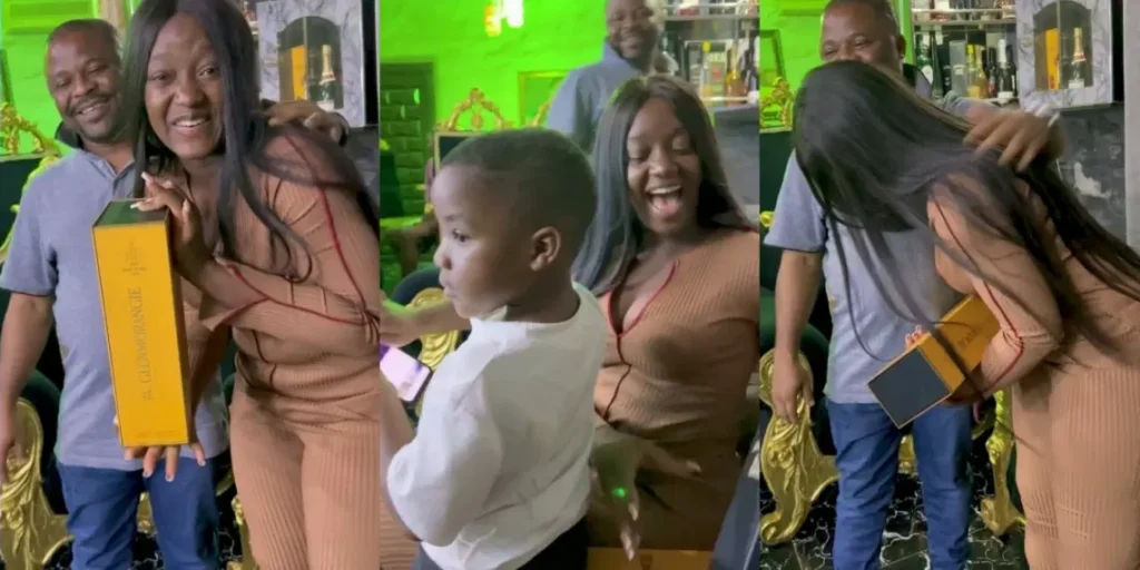 On Wednesday morning, a new video Luchy Donalds posted on her Instagram page showed her accepting various wines as gifts from the grieving actor in appreciation for his considerate condolence visit.