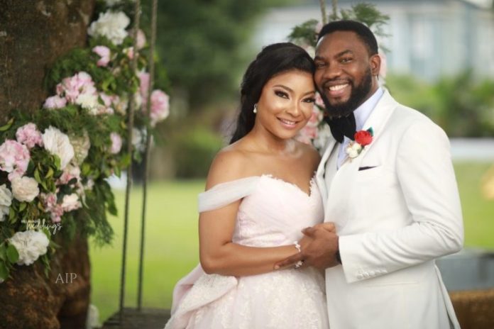 “In a manner of speaking. Because at the time, I was seriously in a relationship. The first time I saw you, I was in a relationship I thought was going to end in marriage because I don order ring, at the time. However, I was walking, I went to visit my mother, and I was walking past the living room while she was watching an episode of Tinsel. I didn’t really used to watch TV at all because I was a gamer, and so I saw this beautiful girl on TV and she was talking. And the way her lips were moving, I was like “Ah, she has nice lips. I would like to kiss that girl one day”. Guess who kisses that girl everyday now. BOOM! See, I’m a man of target setting! So I fell in love with your lips first, you understand, then I now met the rest of you that came with the lips. Then you know, you are fun, you are intelligent, you are hardworking, you are stubborn. All the things I like about a woman. I don’t like boring babes. So yeah, it was almost at first sight.