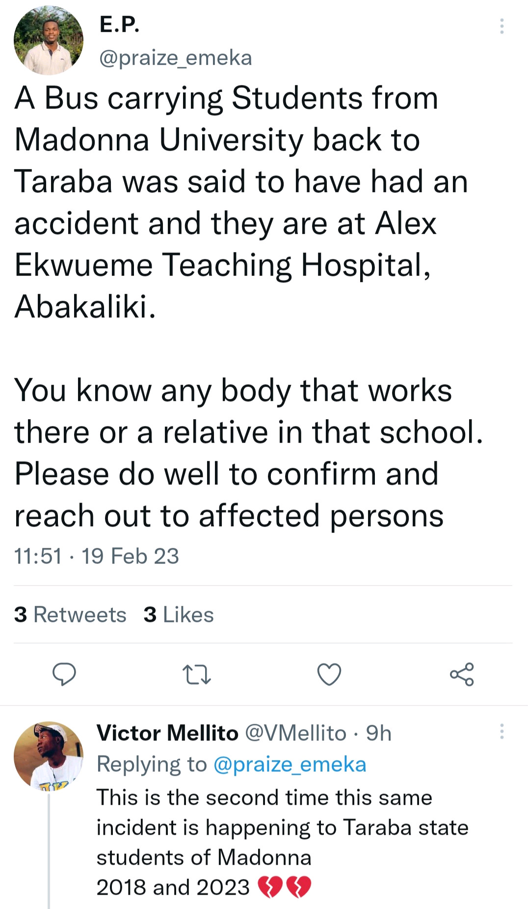 On Saturday, February 18, tragedy struck when at least seven Madonna University students were killed in an accident on their way to Taraba State.