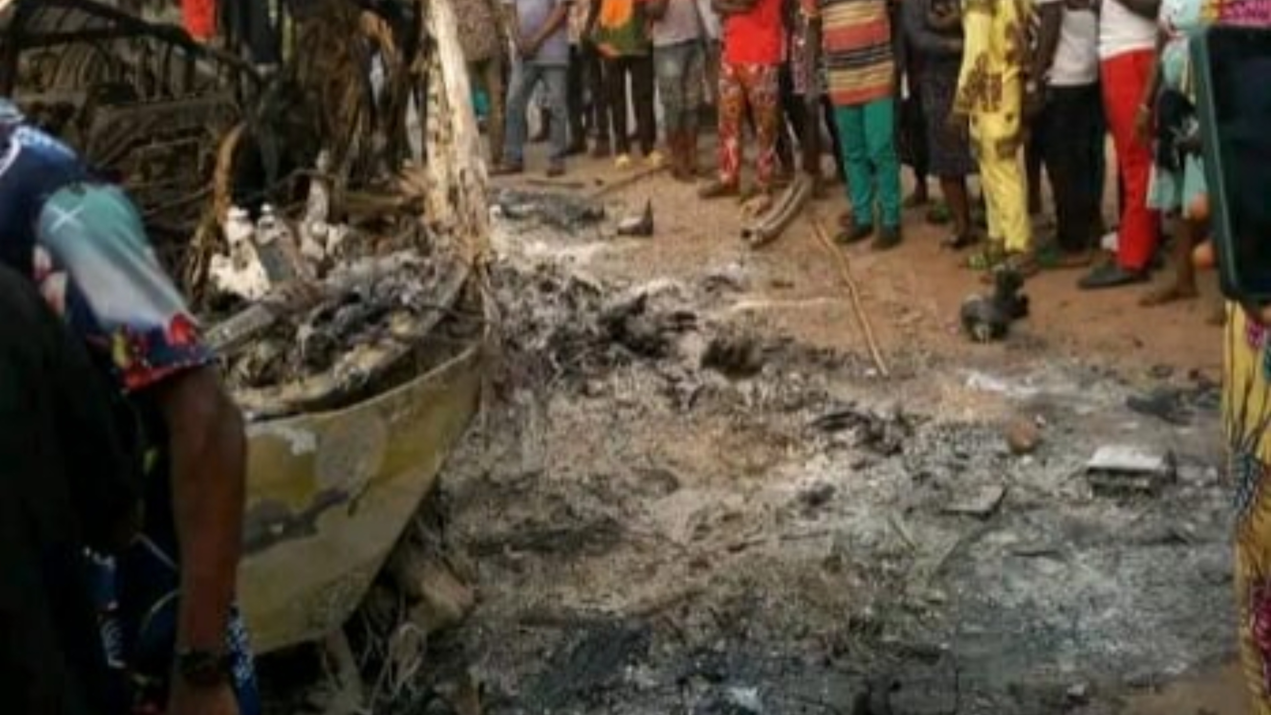 Photos from the scene show the charred remains of victims sticking out of the burnt bus.
