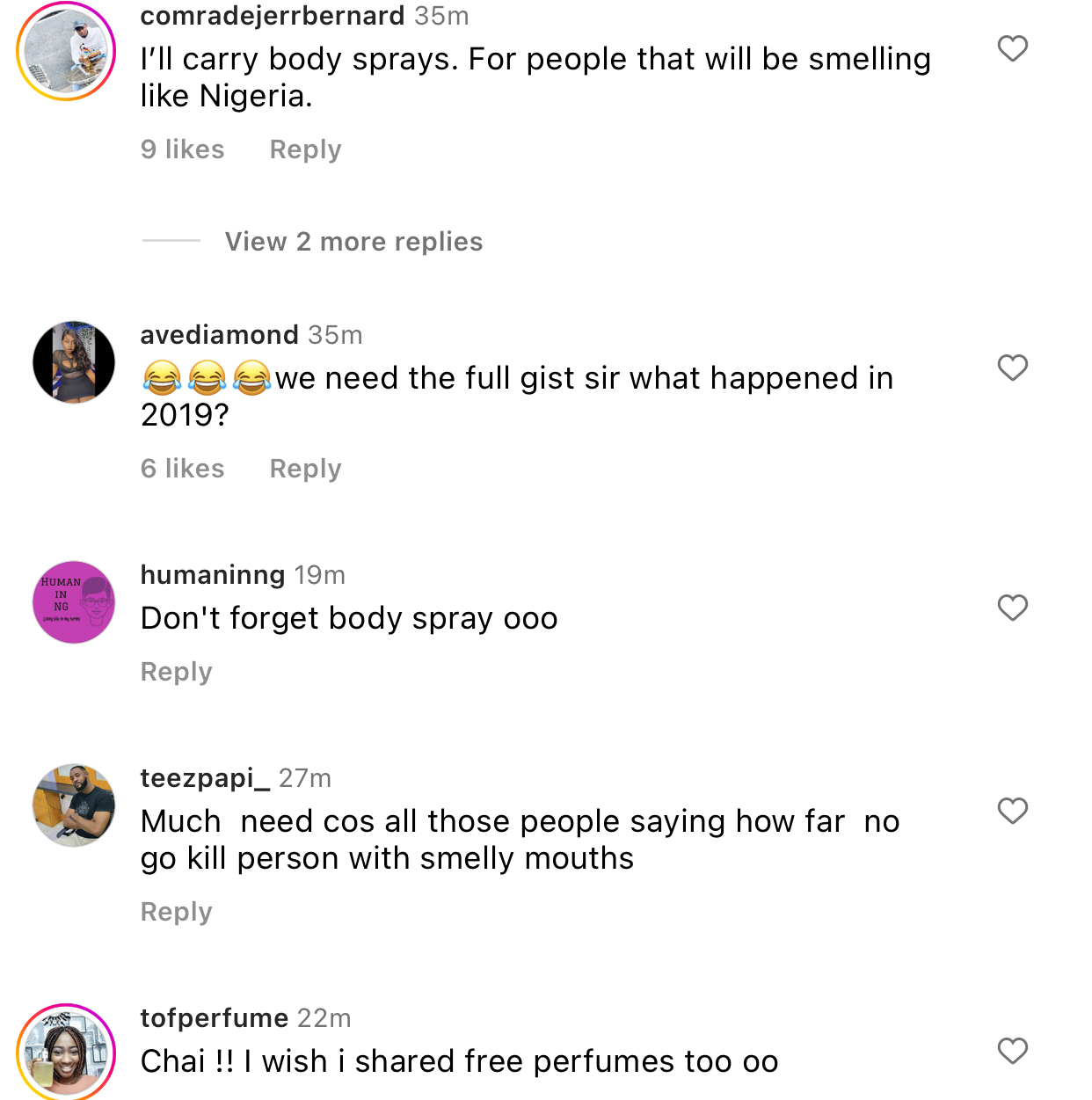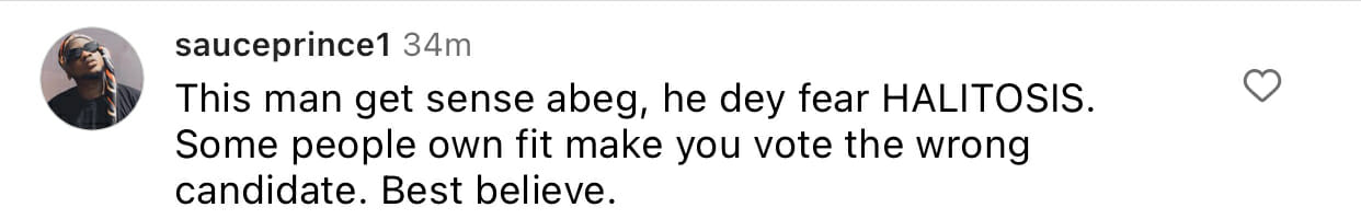 Many Nigerians have also concurred with the actor stating that they also went with nose masks, body spray, deodorants and the likes for people who would turn up at their polling unit without taking a shower or brushing their teeth, thereby making people uncomfortable with different foul smells.
