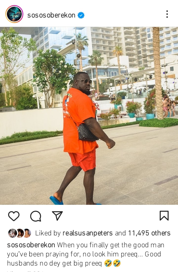According to Soso Soberekon, good husband material doesn’t have a huge prick.