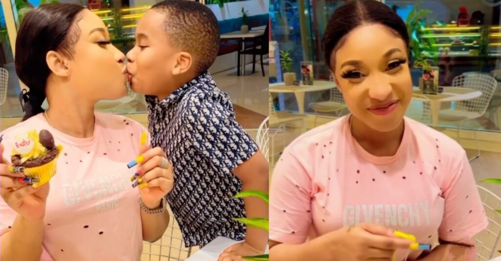 Tonto Dikeh, a popular Nigerian film actress turned politician, has sparked reactions over a gift she gave her son, King Andre, for passing his exams.