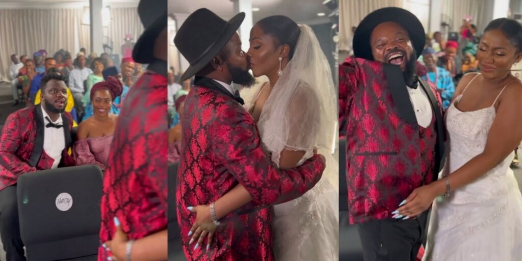 As comedian Sabinus was seen donning a best-man suit, Nedu passionately kissed Mercy in front of the congregation.