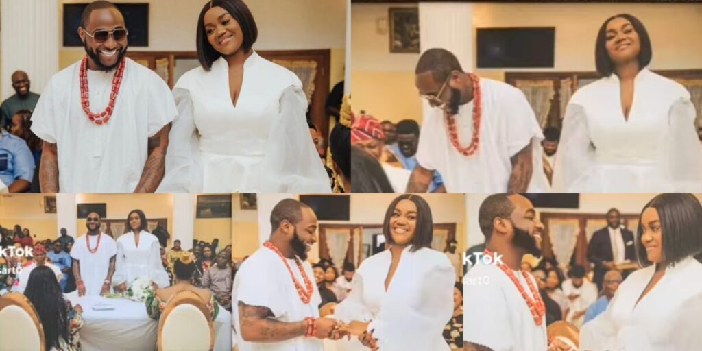 The ceremony appeared to have taken place at Davido’s father’s house in Lagos, with the new couple and their families gathered in a room.