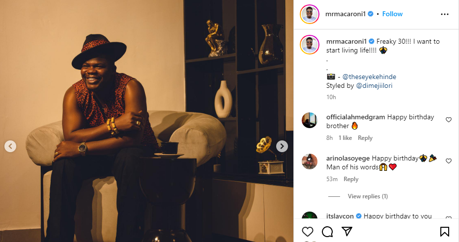 Adebowale “Debo” Adedayo, popularly known by his stage name Mr Macaroni, a Nigerian skit maker and actor, is celebrating his 30th birthday today, 3rd of May.