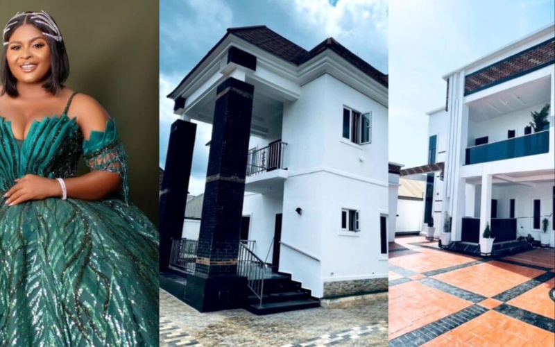 Nollywood actress, Favour Oma is ecstatic and in celebration mood as she acquires a double mansion to celebrate her birthday.