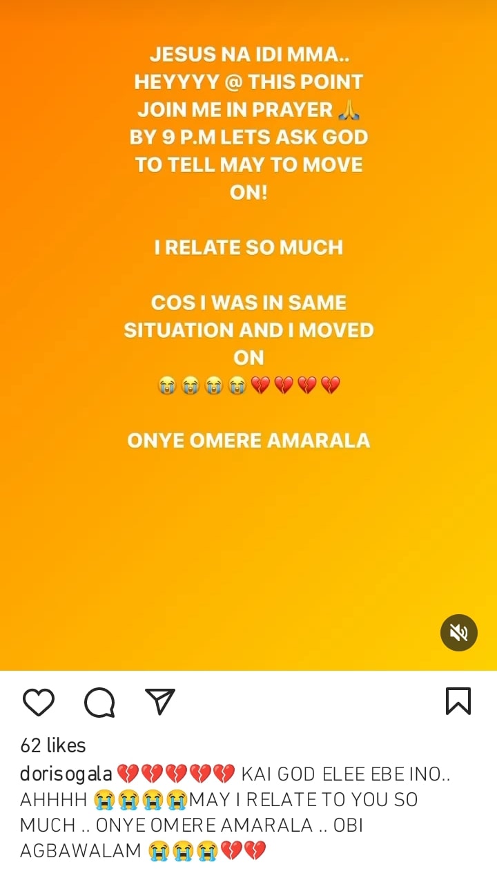 “Jesus na idi mma… Heyyy @ this point. Join me in prayer by 9 p.m. Let’s ask God to tell May to move on!