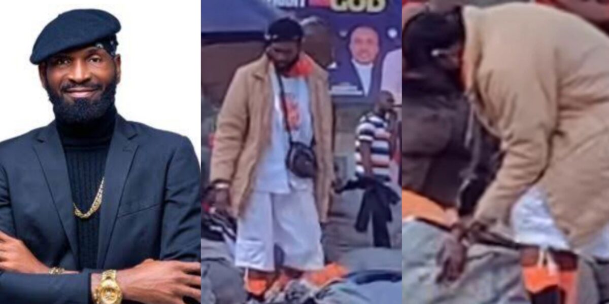 A video circulating on the internet shows the actor selling Okrika at a market in Enugu.