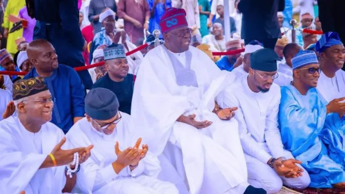 Several dignitaries joined President Bola Tinubu on Wednesday in observing the Eid-el-Kabir prayers at Dodan Barracks prayer ground in Lagos.