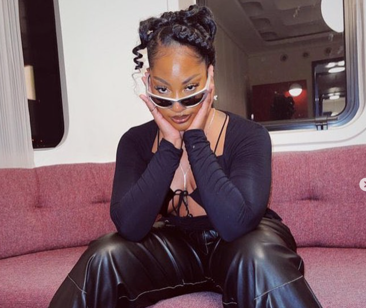 Tems fueled pregnancy suspicions after she was spotted wearing a black dress with a purple fluffy coat and matching heels to Burberry’s Spring/Summer 2023 London Fashion Week display.