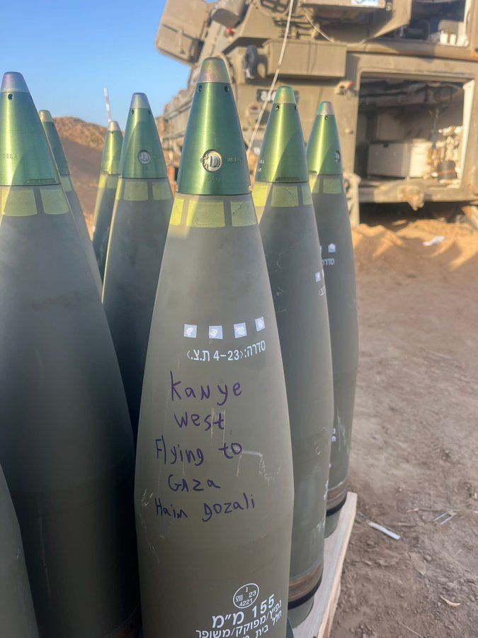 The picture captured a shell with the inscription “Kanye West Flying to Gaza Haim Gozali.”