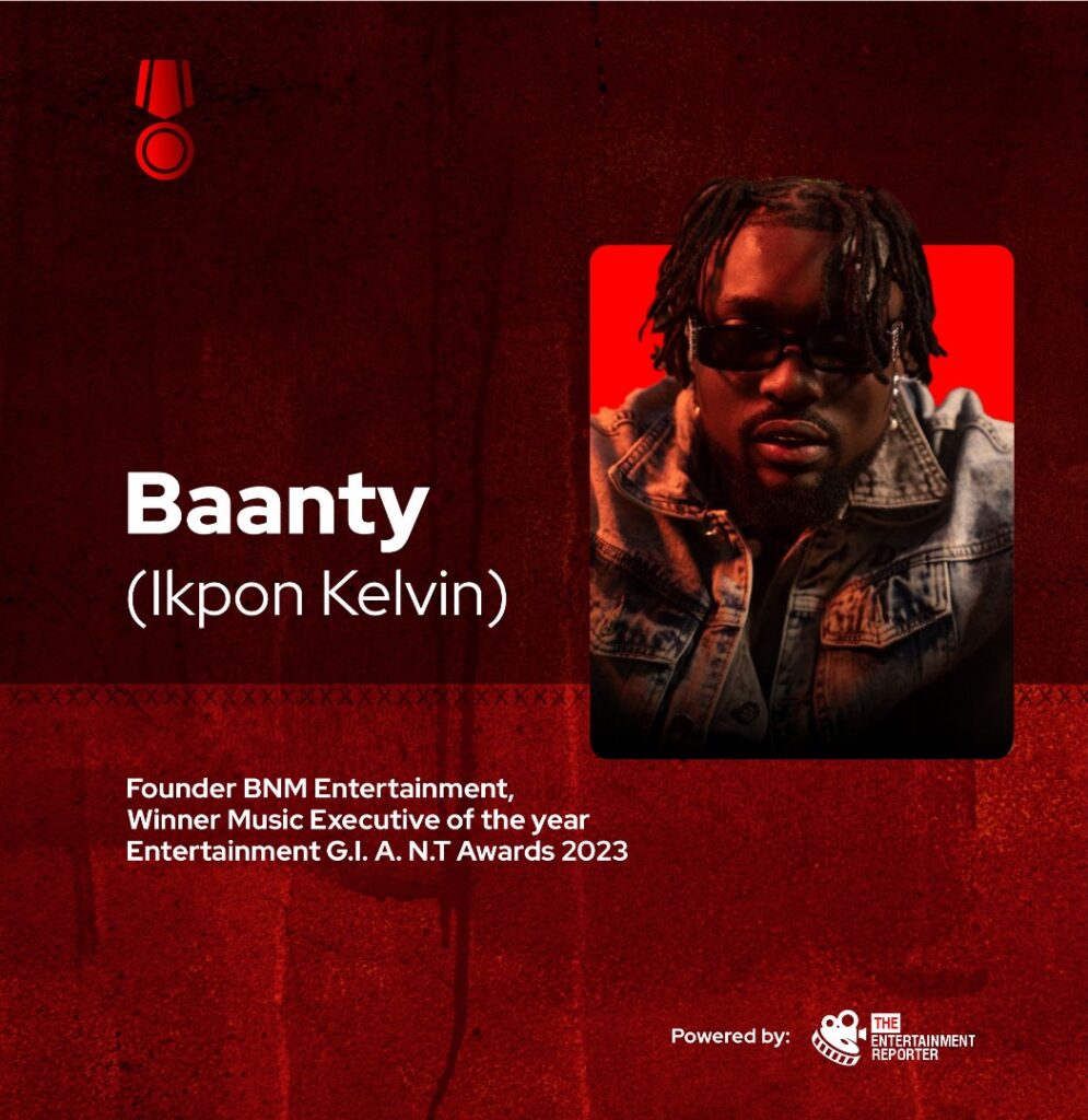 Baanty, also known as Ikpon Kelvin, the visionary Founder of BNM Entertainment, has been honored with the prestigious Music Executive of the Year Award at the Entertainment GIANT 2023 Awards. Organized by Entertainment Reporter, this annual event celebrates excellence in the Nigerian entertainment industry.