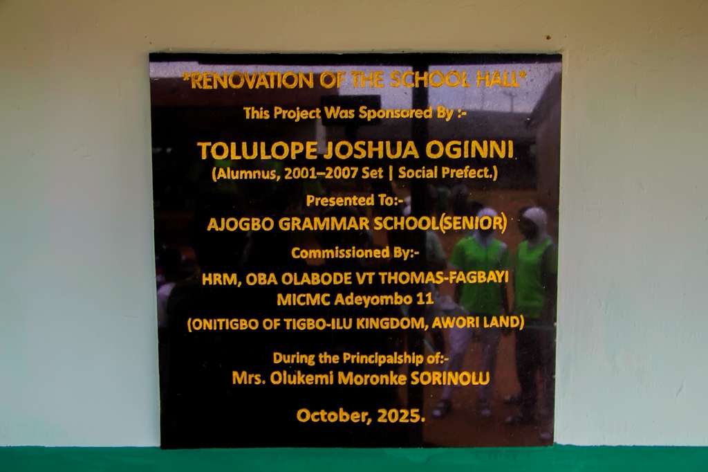 “Though it has been 18 years since I graduated from this school, I never forgot my roots. Ajogbo Grammar School is part of my story. This hall is not just a hall to me; it is a reminder of where it all began, my foundation, my growth, and the journey that shaped who I am today.”