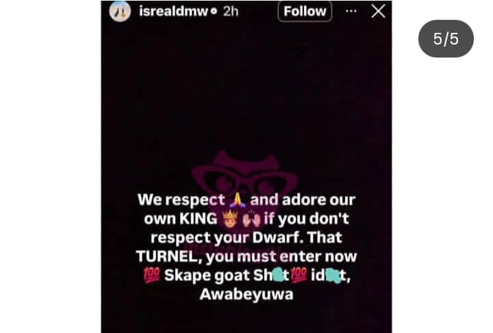 “We respect and adore our own king (Davido) if you don’t respect your dwarf (Wizkid). That Turnel you must enter now. Skape goat shit, idiot, awabeyuwa.”